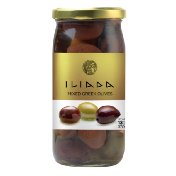 The Iliada Mixed Whole Olives is a tasty and attractive mix of whole Greek olives, including Kalamata olives, green olives from Chalkidiki, and black Volos olives. The meaty Kalamata olives contrast beautifully with the mild and slightly acidic green olives grown on the Chalkidiki Peninsula in Northern Greece, and the softer, more mature texture and stronger flavour of black olives from the province of Volos in Thessaly.
