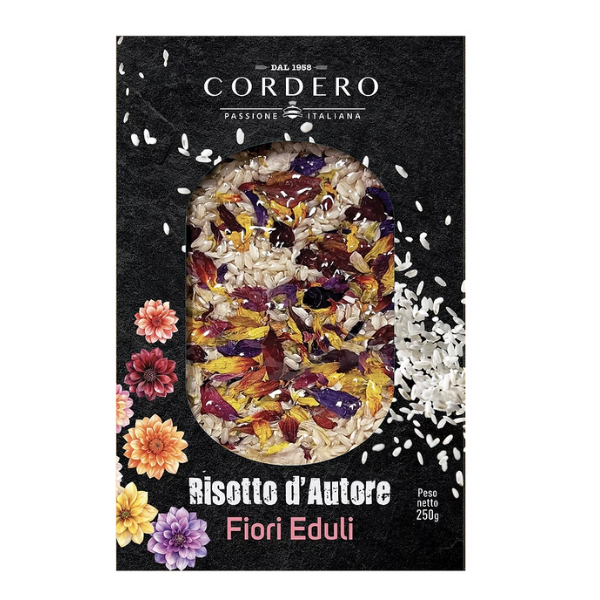 The Cordero family has been crafting and milling grains since 1958. Luigi Cordero launched his company Molino di Borgo San Dalmazzo in 1958 in Italy’s Piedmont to grind local grain for local bakeries. To celebrate their grandfather’s achievement, the family recently rebranded under his name, expanding their range and their markets without losing the integrity, authenticity and goodness that made the original mill so beloved in Borgo San Dalmazzo. The Cordero Risotto with Edible Flowers showcases the perfect marriage of simplicity and quality achieved through Cordero’s intense and abiding “passione italiana.”