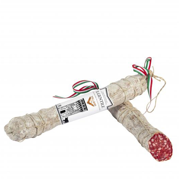 Made using carefully-selected pure pork which is packed in natural gut casing and hand-trussed. Dusting with flour and brushing lends the Felino a distinct craft feel. Lightly seasoned with black peppercorns and a little salt, it has a characteristic softness, intense colour, and delicate flavour. Dairy free.
