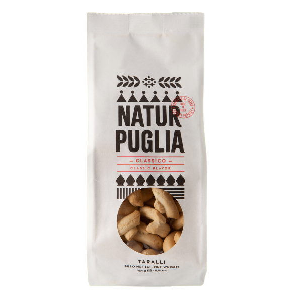 Deeply embedded in the Puglian landscape, Natur Puglia focuses on producing several typical local products that showcase the best local ingredients and baking traditions. Try the Natur Puglia Taralli Classico for a great natural snack full of Puglian sunshine.